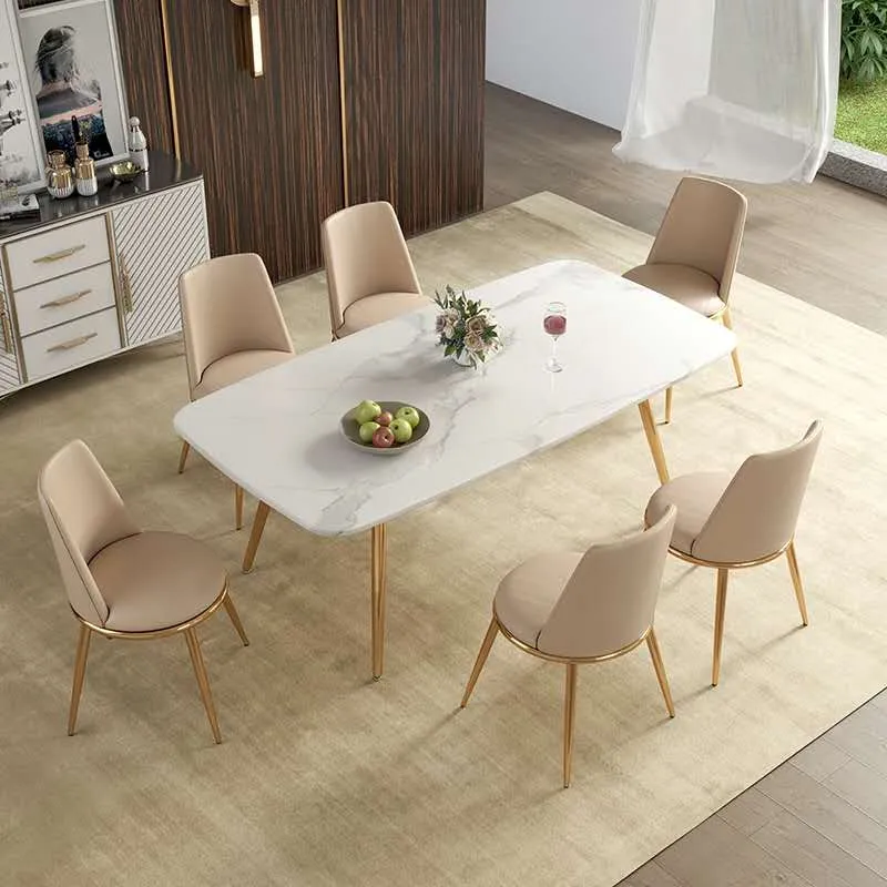 Italian White Marble Dining Table Nordic Rectangular Mesa Marmol Stainless Steel Legs 6 Seater Light Luxury Dining Table